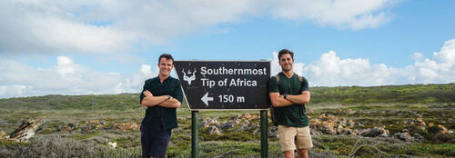 When we arrived at the Cape, we were greeted by a small storm that was passing through. A very common occurrence as the weather changes so often in the Cape. A little rain never hurt! Ross grabbed his bagpipes and kilt and played Amazing Grace from atop of the monument that marks the dividing line between the Atlantic and Indian Oceans.
