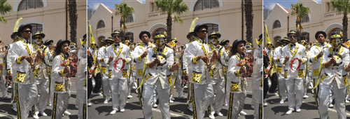 With band names like ‘dixies', ‘the district six band', and songs like ‘take me to Mannenberg', this is a celebration of life and new year, rather than a reflection on the days of slavery, for most of those involved are third or fourth generation, and the more garish the costume, and the more the banjo tunes can make your feet tap, the better.